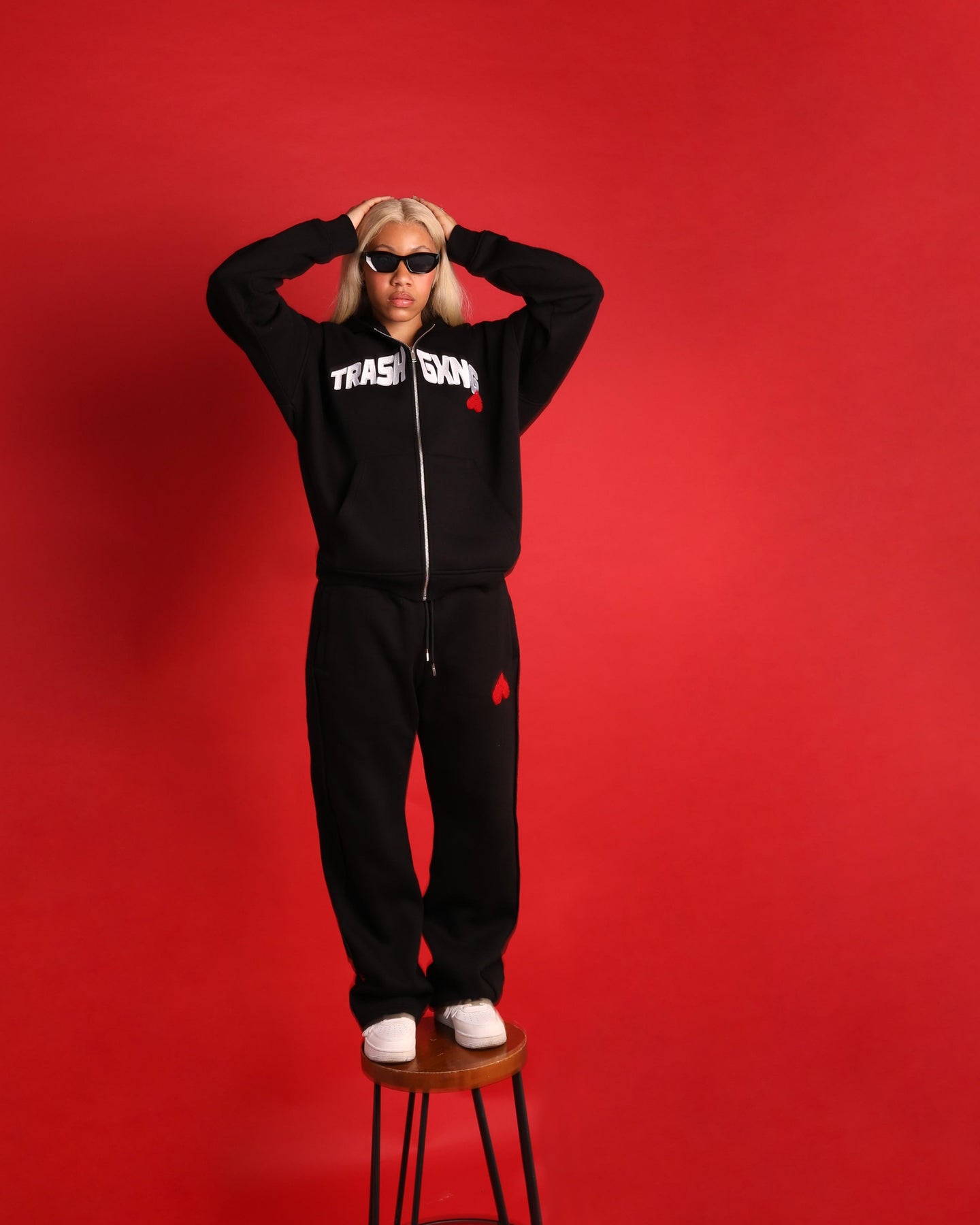 This is the fourth installation in our 'Trash Love' series. Showcasing what it means to celebrate true OG love only - if it ain't real, we don't want it. The heart on the front and back is made of unique soft towel-like heart logo. This tracksuit is a straight fit, baggy style, premium cotton - meaning it's super soft to touch.