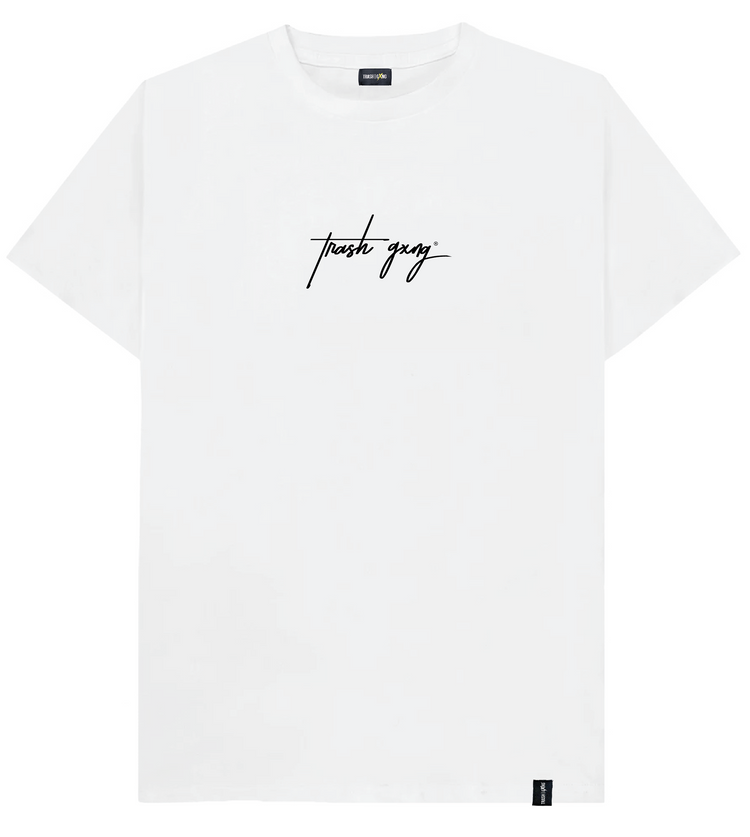 This classic white crew neck tee features our signature script print. Crafted with 100% cotton, it’s comfortable and durable. The bright colour screen print makes you stand out, while the simple design pairs effortlessly with any outfit. Also available in black.